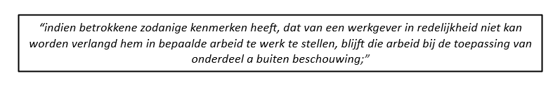 Een wellicht minder bekende regel die de arbeidsdeskundige van het UWV bij de arbeidsongeschiktheidsbeoordeling moet volgen, is dat sommige functies buiten beschouwing gelaten moet worden als van een werkgever in ‘redelijkheid’ niet gevraagd kan worden deze specifieke persoon in die functie te laten werken. In artikel 9 sub e van het Schattingsbesluit wordt dit als volgt omschreven: